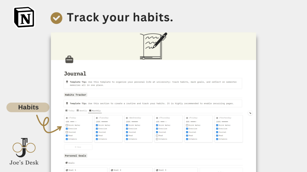 This Notion template is perfect for students looking to efficiently organize their school life while seamlessly tracking their personal activities.